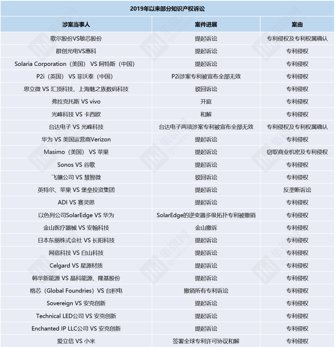 在第20個(gè)“世界知識(shí)產(chǎn)權(quán)日”到來(lái)之際,集微網(wǎng)根據(jù)公開資料梳理了2019年以來(lái)的泛半導(dǎo)體產(chǎn)業(yè)相關(guān)專利訴訟案例,以期幫助知識(shí)密集型企業(yè)了解最新的專利戰(zhàn)風(fēng)險(xiǎn)與策略。